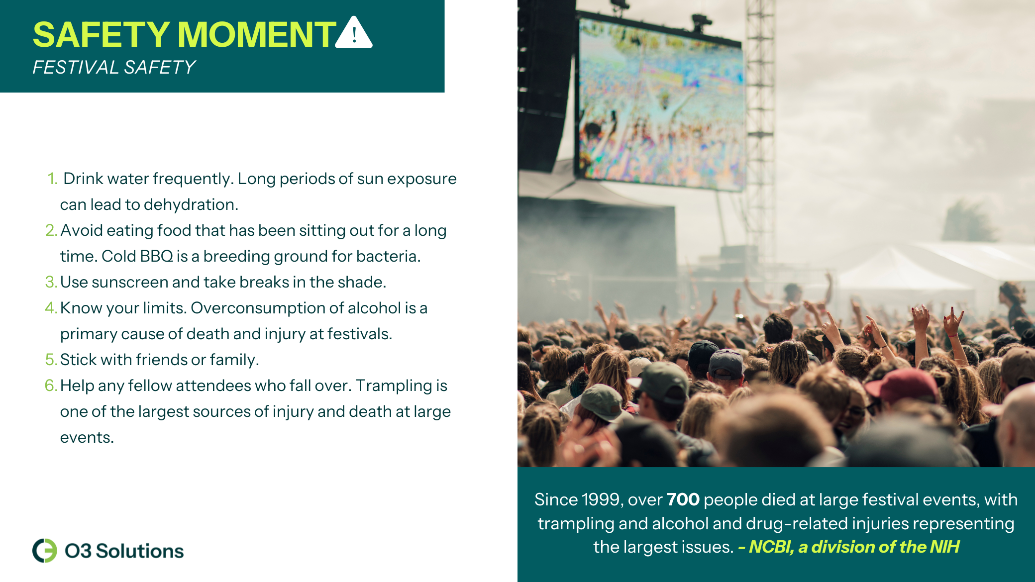 In this safety moment, we explore festival safety. Download now for your next presentation.