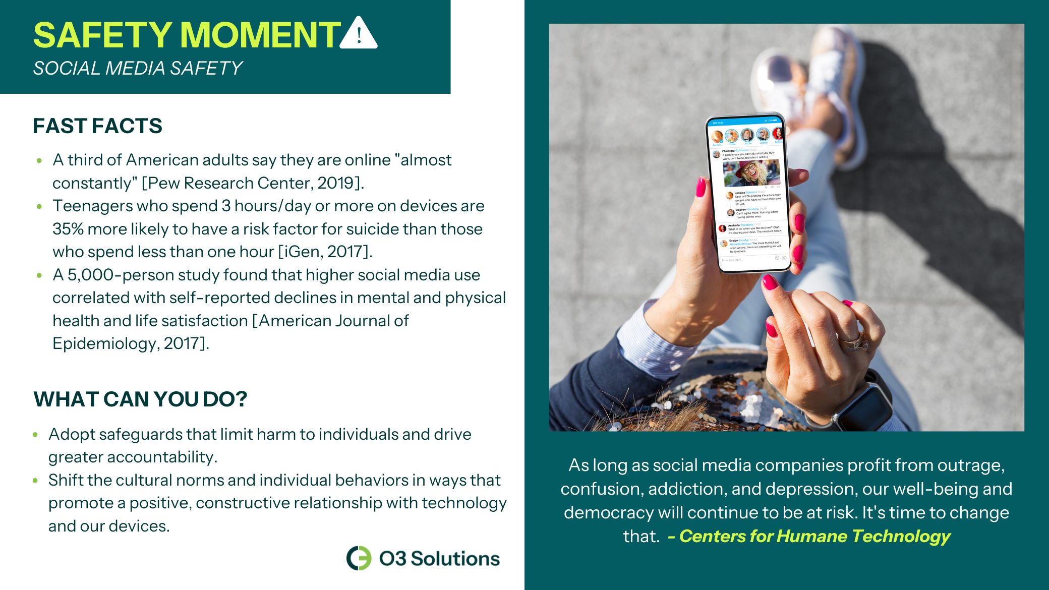 In this safety moment, we explore social media safety. Download now for your next presentation.