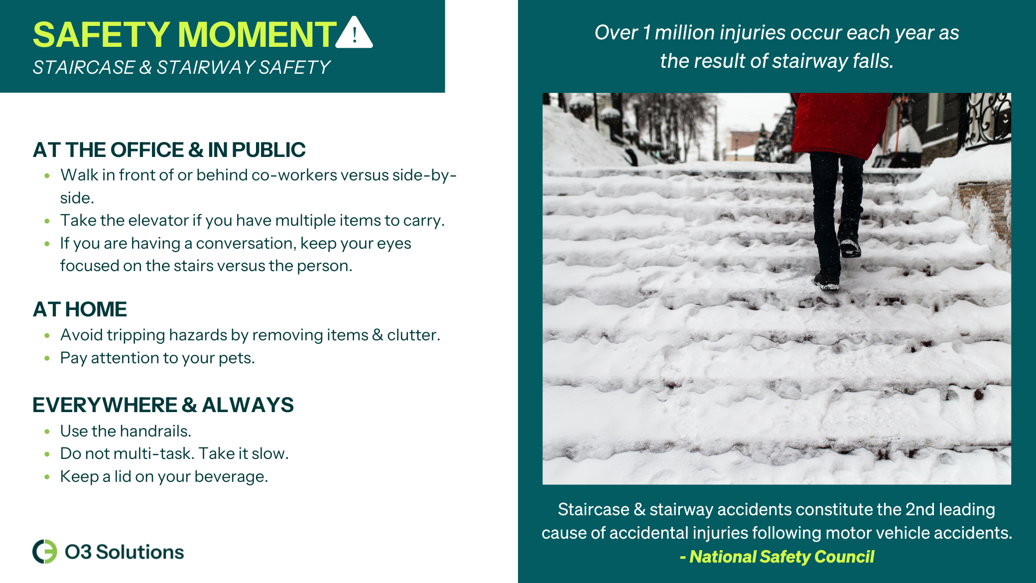 In this safety moment, we staircase and stairway safety. Download now for your next presentation.