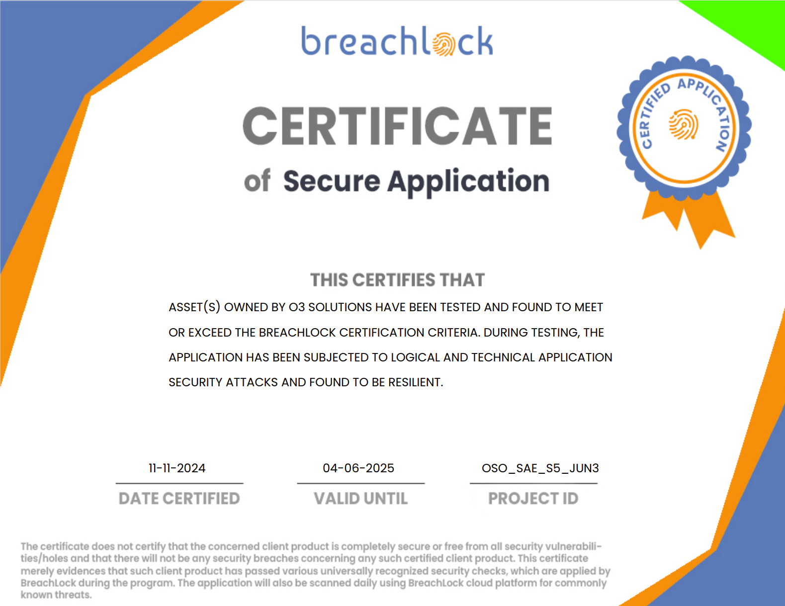 O3 is AICPA SOC 2 Type II certified and holds a Breachlock Certificate of Secure Application.